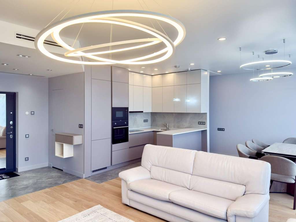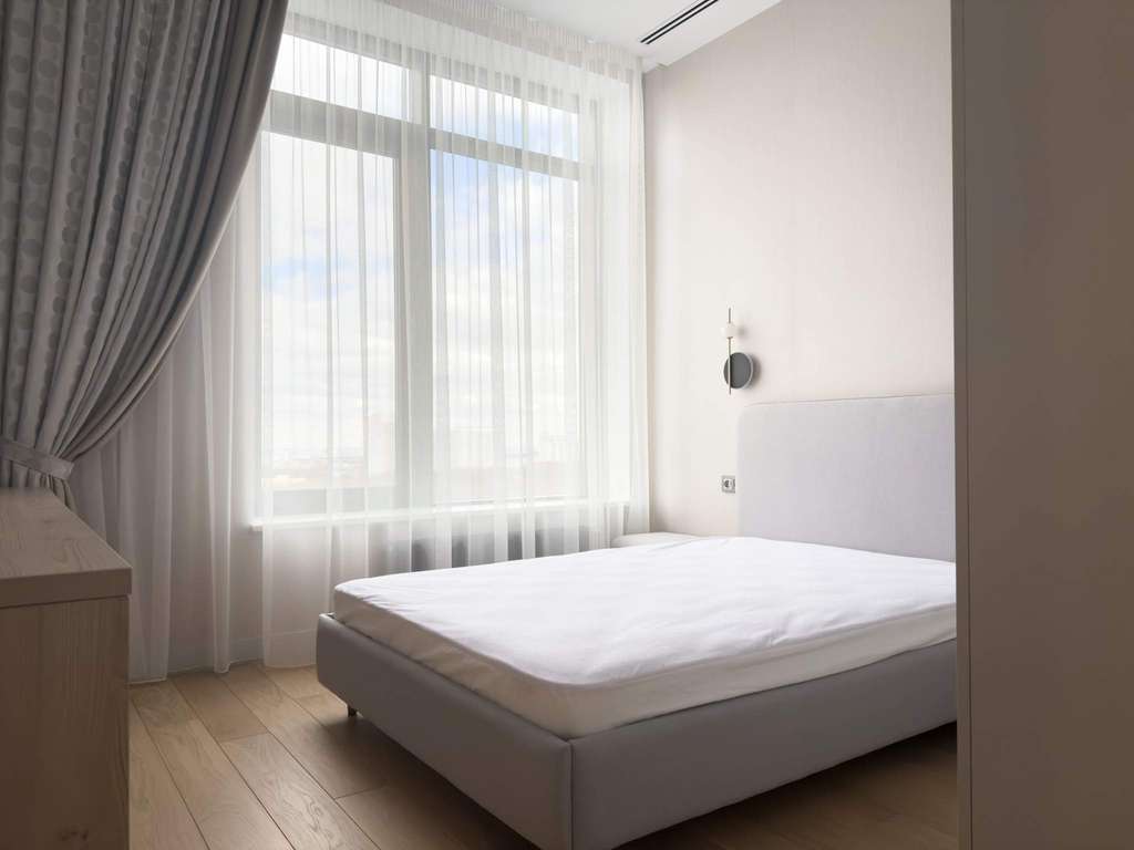 Потолки высотой 3 метра дарят ощущение свободы и объема, а панорамные окна открывают живописный вид на зелень и город.