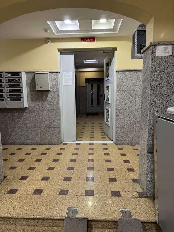 Чистый подъезд, современный дом – 17 этажей, лифты, видеонаблюдение, домофон.
