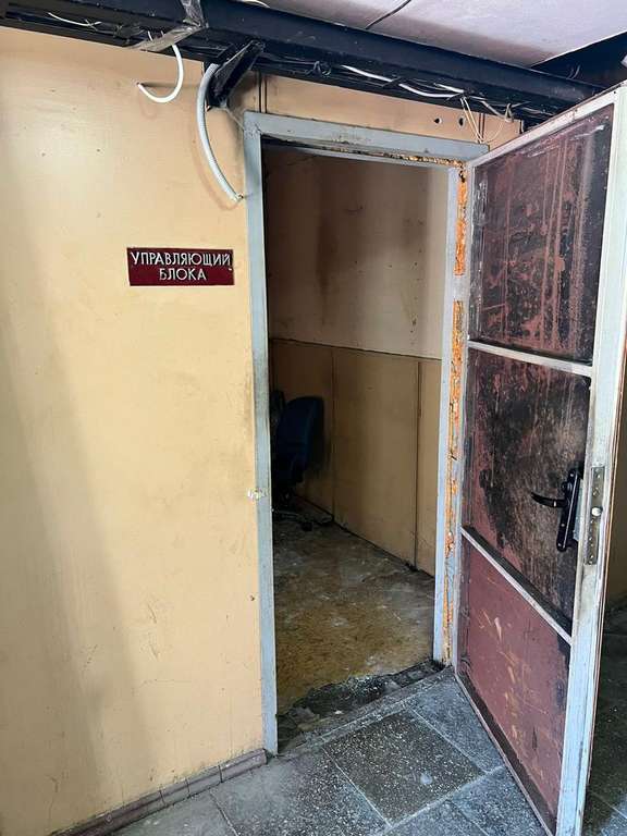 Вход в общий коридор с улицы, сразу первая дверь слева. Широкая металлическая дверь (возможно расширение)