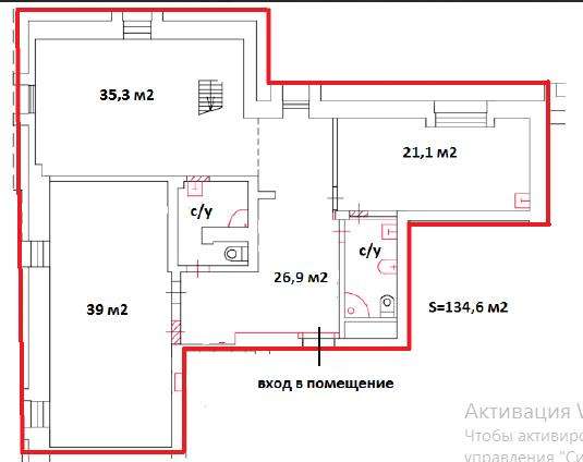 1)134,6 м2 - 2 кабинета, 2 с/у,