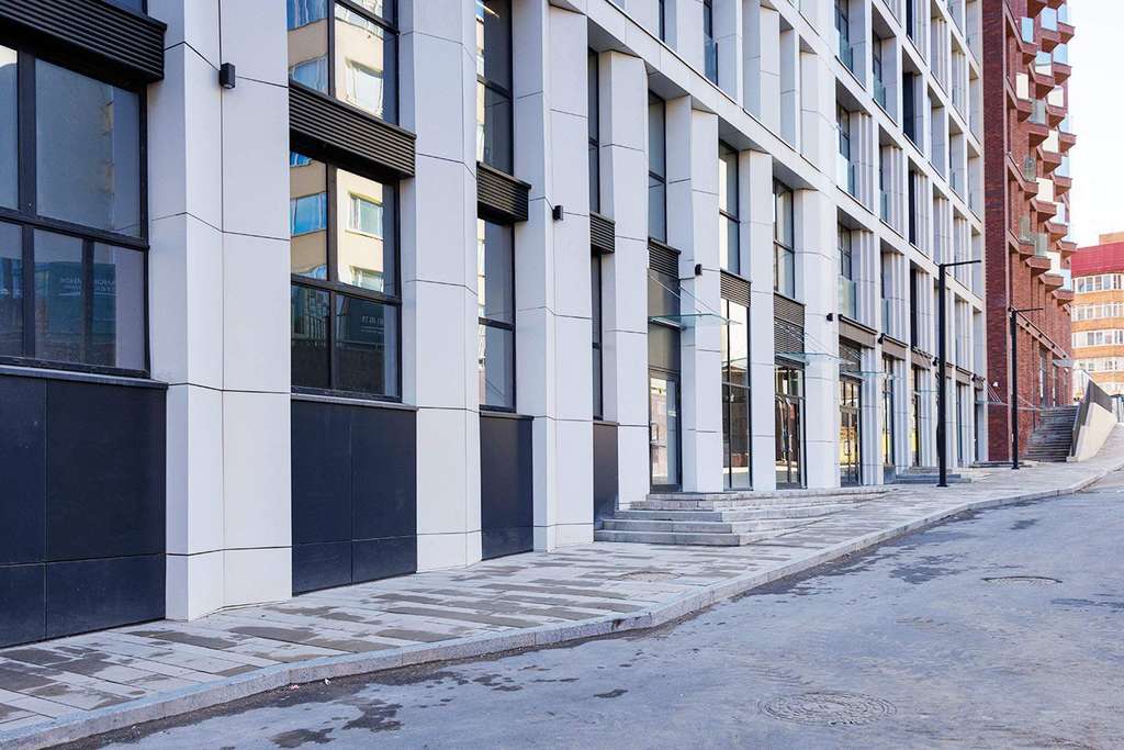 На первых этажах комплекса представлены коммерческие помещения площадью от 25 до 3143 кв. м. Каждое помещение имеет отдельный вход, витринное остекление и возможность гибкой планировки. Здесь можно открыть супермаркет, кафе, офис, магазин или предприятие сферы услуг. Высокий пешеходный и автомобильный трафик обеспечен благодаря расположению крупных вузов, деловых центров, парковых зон в ближайшей зоне охвата объекта.