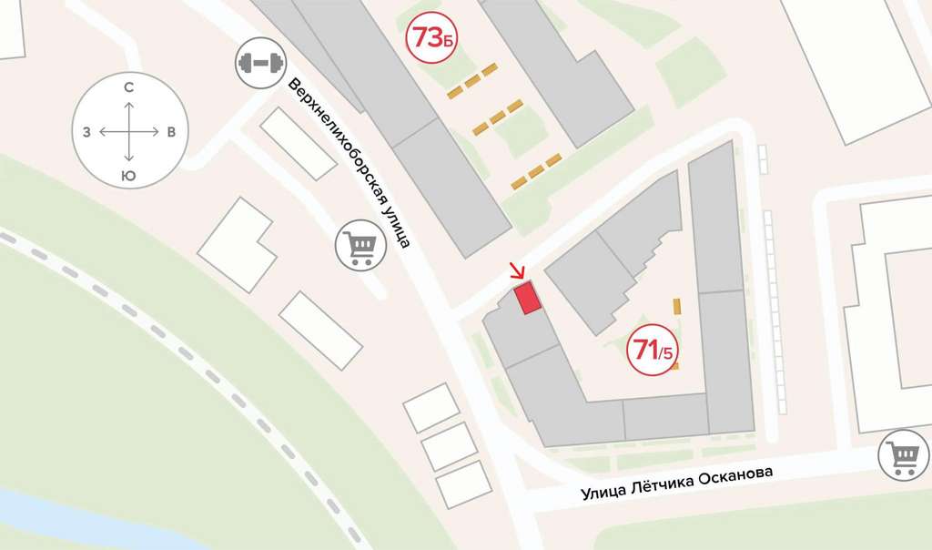 У каждого помещения есть отдельный вход, место под вывеску и витринное остекление, возможно объединить несколько лотов при необходимости. Площади для аренды - от 30,2 кв. м до 493,8 кв. м.