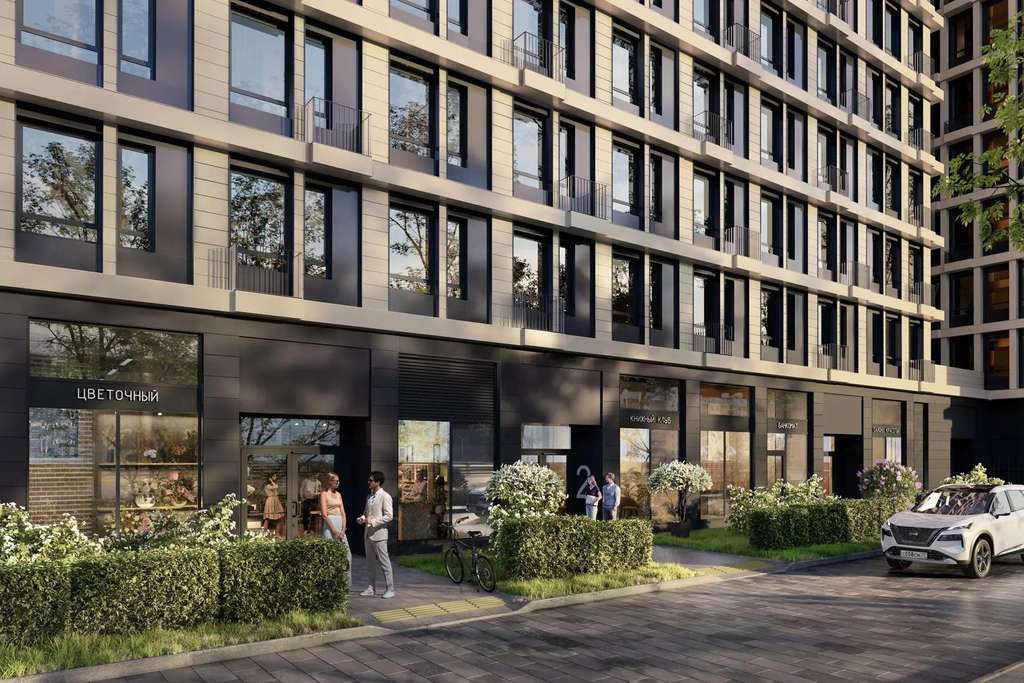 На первых этажах комплекса представлены коммерческие помещения площадью от 26 до 302 кв. м. Каждое помещение имеет отдельный вход, витринное остекление и возможность гибкой планировки. Здесь можно открыть супермаркет, кафе, офис, магазин или предприятие сферы услуг. Высокий пешеходный трафик обеспечивается благодаря близости жилого комплекса и будущего крупного общественно-делового квартала.