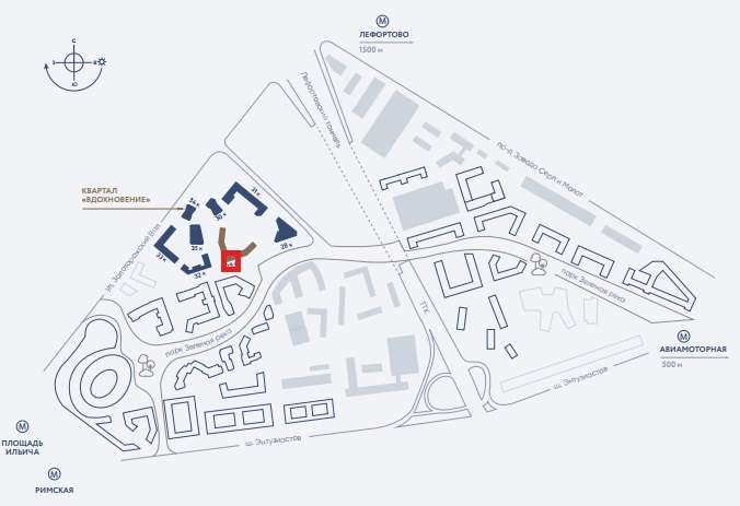 Жилой квартал расположен рядом с метро Авиамоторная, Площадь Ильича, Римская, МДД-4 ст. Серп и Молот, с развитой инфраструктурой, парком Зеленая река и новой архитектурой.