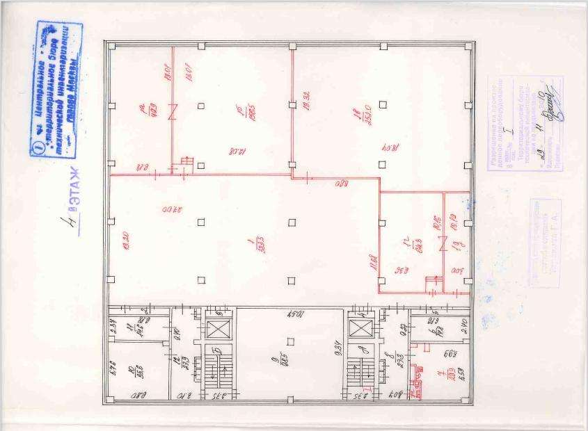 Плoщадь этажа 1230,7 м2. Планировка смешанная, 6 больших кабинетов. Высота потолков 4,3 м. Этаж 4.