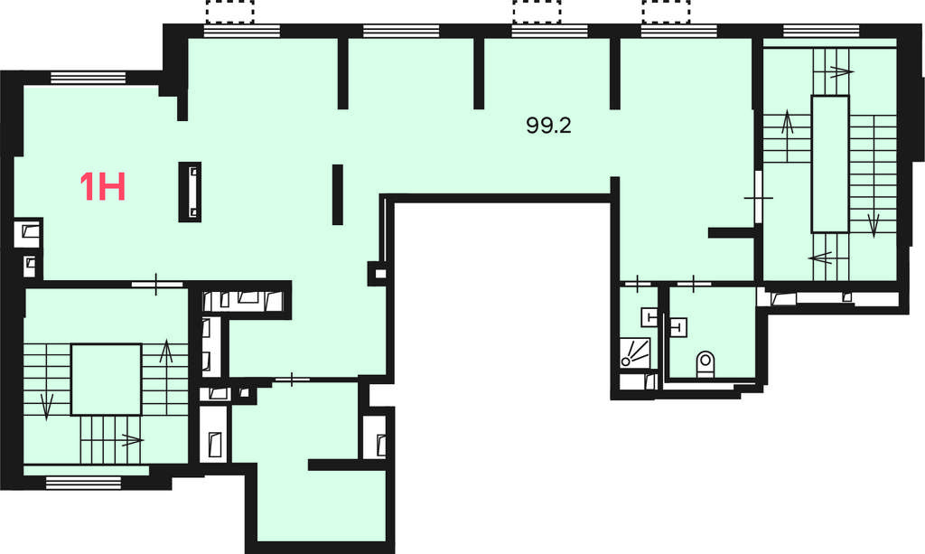 Объект занимает 1 и 2 этажи нового 24-этажного жилого дома 2024 года постройки, на первой линии застройки, в активной жилой и деловой среде.