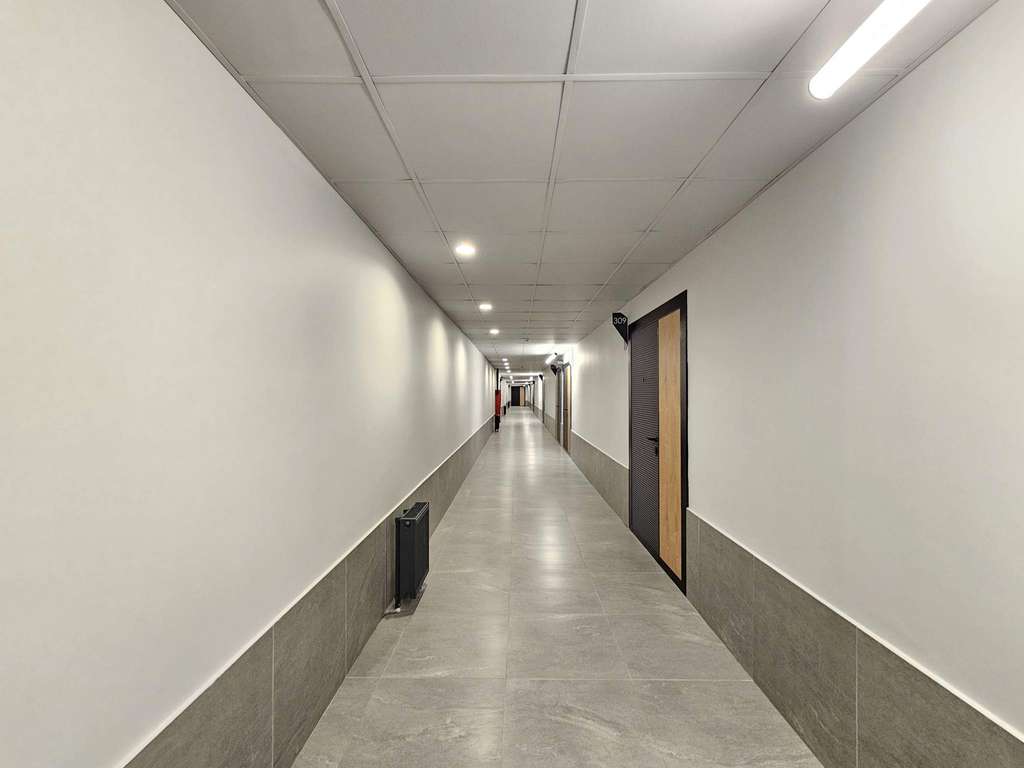 Есть все необходимые коммуникации: центральное отопление, электроэнергия, водопровод, канализация и мокрые точки. Высота потолков - 3 м. На этажах расположены отдельные санузлы. Доступ в интернет предоставляется через высокоскоростной оптоволоконный кабель.
