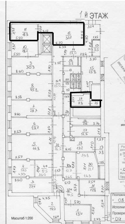 комнаты №№ 11 (площадь 18,8 кв. м. ), 12 (площадь 33,1 кв. м. ), 24 (площадь 7,8 кв. м. ), 25 (площадь 1,9 кв. м. ). Общая площадь 61,6 кв. м.