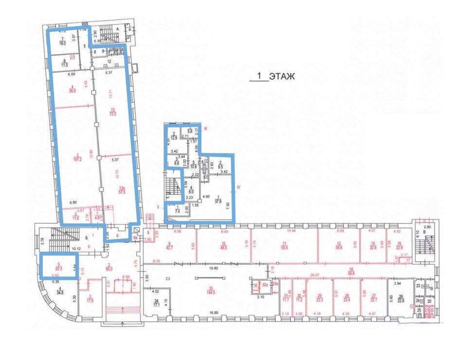 Плoщадь помещения 481,8 м2 по БTИ. Рaсчeтнaя плoщaдь 510,7 м2 (6% коридорный коэффициент) . Планировка смешанная. Высота потолков 4,2 м. Этаж 1.