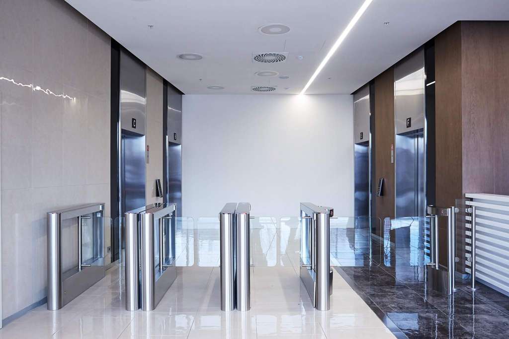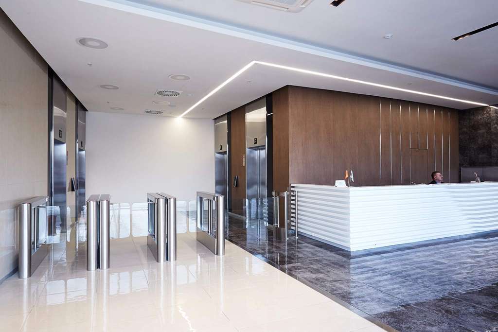 Здание находится под круглосуточной охраной и видеонаблюдением, пропускной режим по карточкам.
