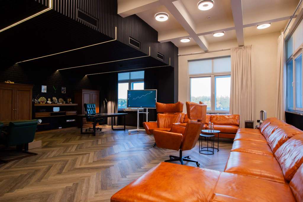 Дизайнерский ремонт: офис оформлен по индивидуальному проекту с использованием премиум-материалов.