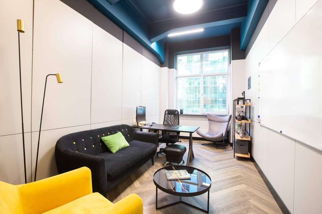 Дизайнерский ремонт: офис оформлен по индивидуальному проекту с использованием премиум-материалов.