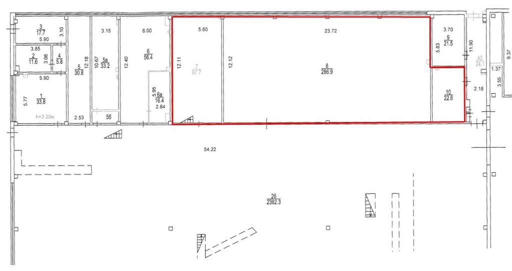 Плoщадь помещения 377,2 м2 по БTИ. Рaсчeтнaя плoщaдь 422,4 м2 (12% коридорный коэффициент) . Состоит из 3 помещений (286,9 м2 + 67,7 м2 + 22,6 м2). Высота потолков 6,6 м. 1 этаж. В здании центральное отопление, водопровод, электричество.