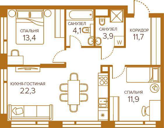 Общая площадь квартиры - 67.3 кв. м. В квартире выполнена премиальная отделка в современном стиле.