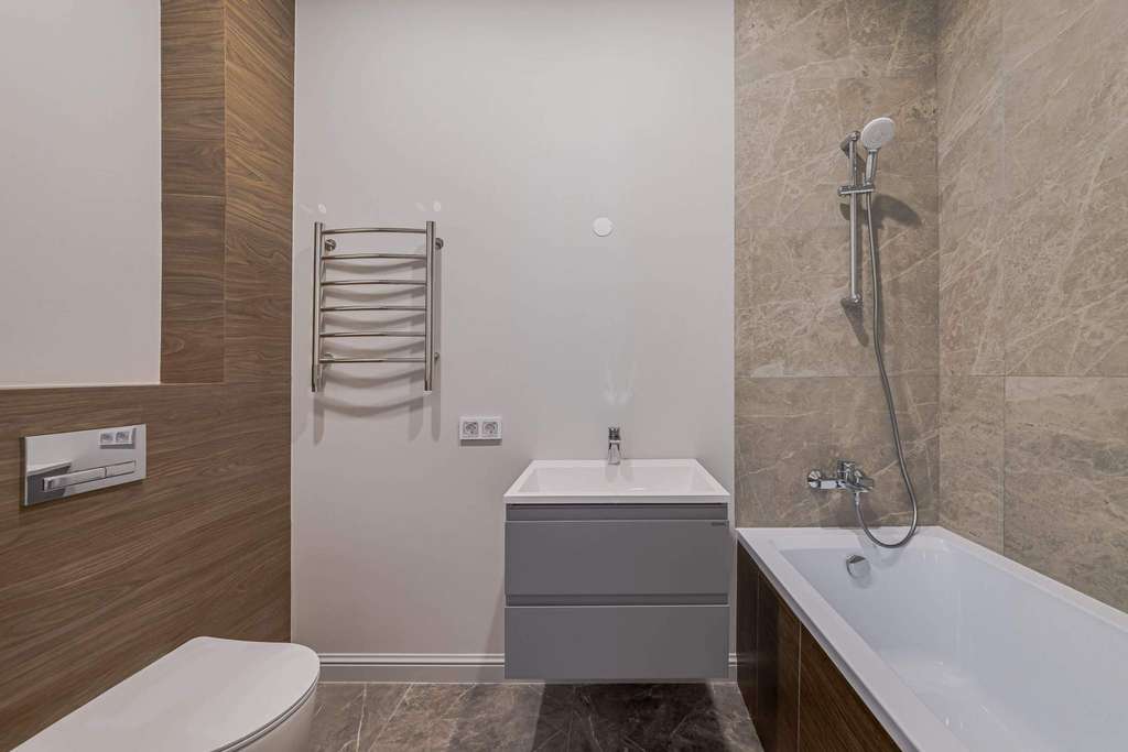 Общая площадь квартиры - 64 кв. м. В квартире выполнена премиальная отделка в неоклассическом стиле.