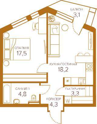 Продается 1-комнатная квартира в доме Champine (Сосинская, д. 8) .
