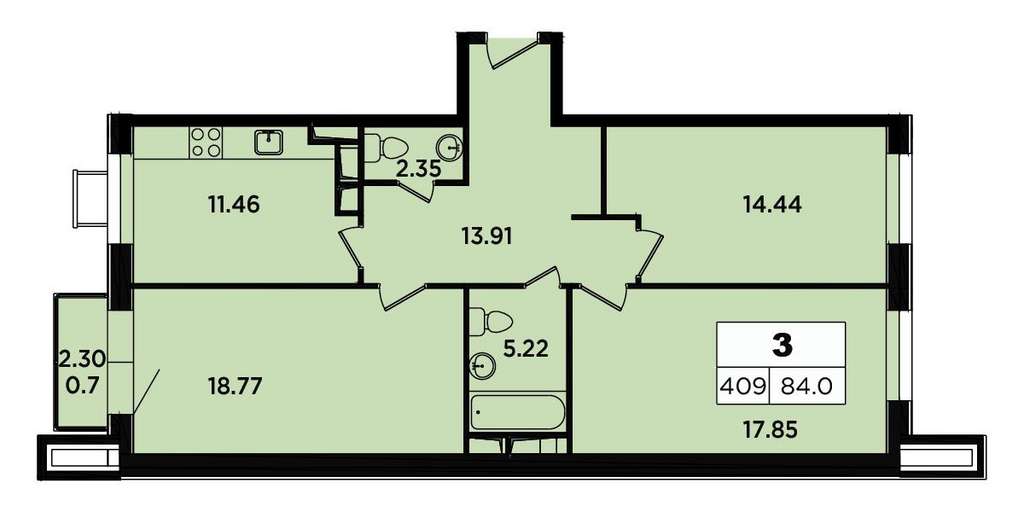 Квартира располагается на 13 этаже 17-этажного монолитного дома в ЖК Апарт-комплекс Легендарный квартал 2023 года постройки. Просторные апартаменты с окнами на две стороны света. Три изолированные комнаты, общая площадь 84,0 м2. Без отделки. Лот 2-409.