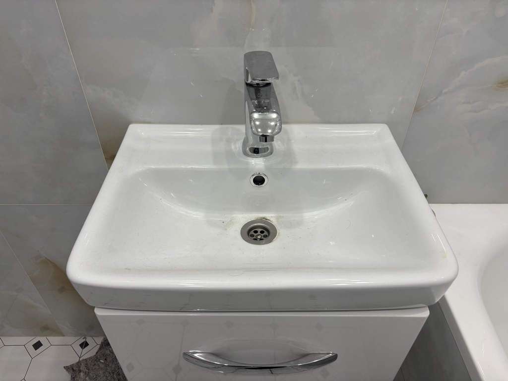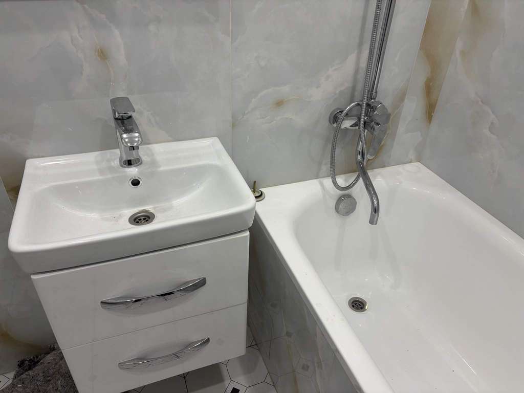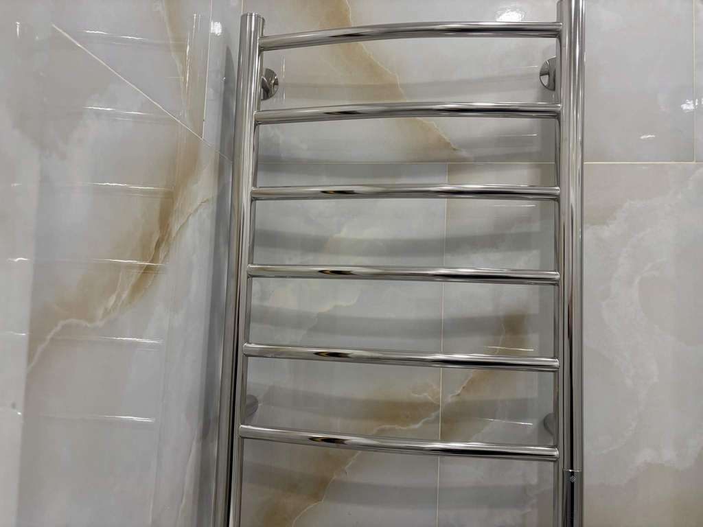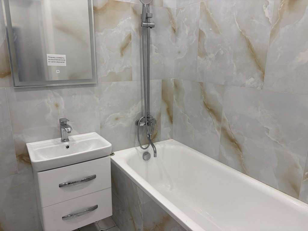 Сан. узел: керамогранит, теплый пол, установлено сантехническое оборудование, полотенцесущитель, зеркало с подсветкой, тумба напольная;