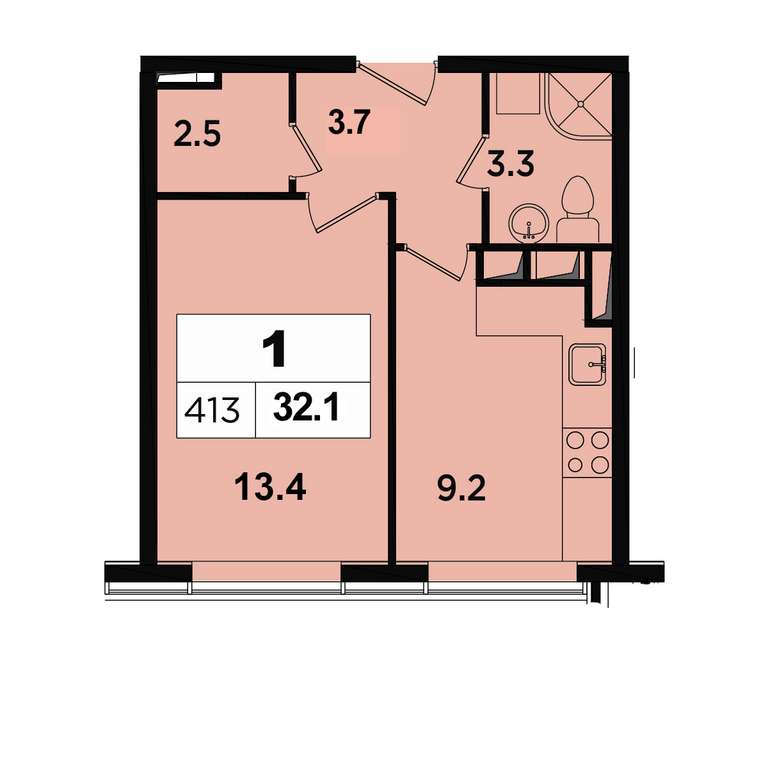 Площадь - 32,1 м2. Заезжай и живи!