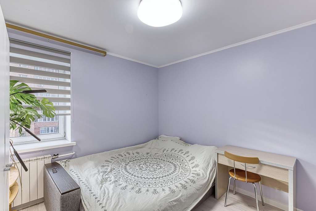 Квартира расположена на 9 этаже, две небольшие спальни, большая кухня и просторный хол, оборудованный шкафами для хранения. Кухонный гарнитур, шкафы в прихожей - остаются. Квартира в хорошем состоянии, косметический ремонт был сделан 2 года назад.