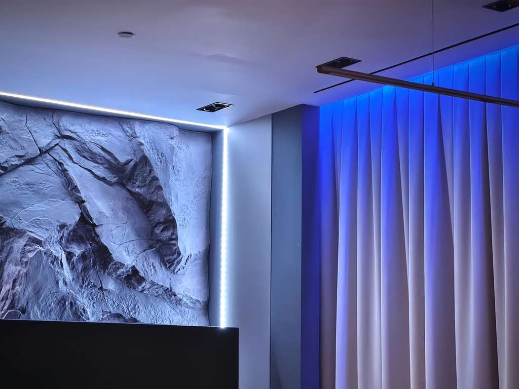 Автоматические шторы во всех спальнях. Встроенная музыкальная система в потолке для каждого помещения. Голосовое управление Алисой. Много сценариев света, на выбор 64 цвета.