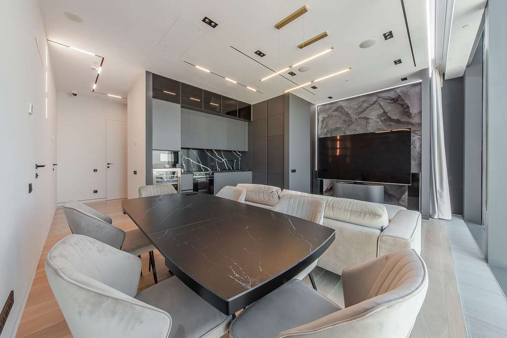 Самые свежие тенденции интерьерного дизайна. Супермодная и красивая квартира с дизайнерской отделкой в современном стиле. Дорогие качественные отделочные материалы. Со вкусом подобранная дизайнерская мебель и декор. Полный набор бытовой техники ведущих производителей.
