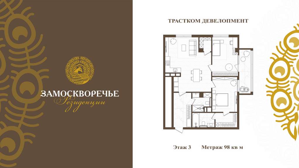 Квартира располагается на 3 этаже 14-этажного монолитного дома в ЖК Резиденции Замоскворечье 2022 года постройки. Застройщик - ООО "Трастком Девелопмент", высота потолков 3 м.