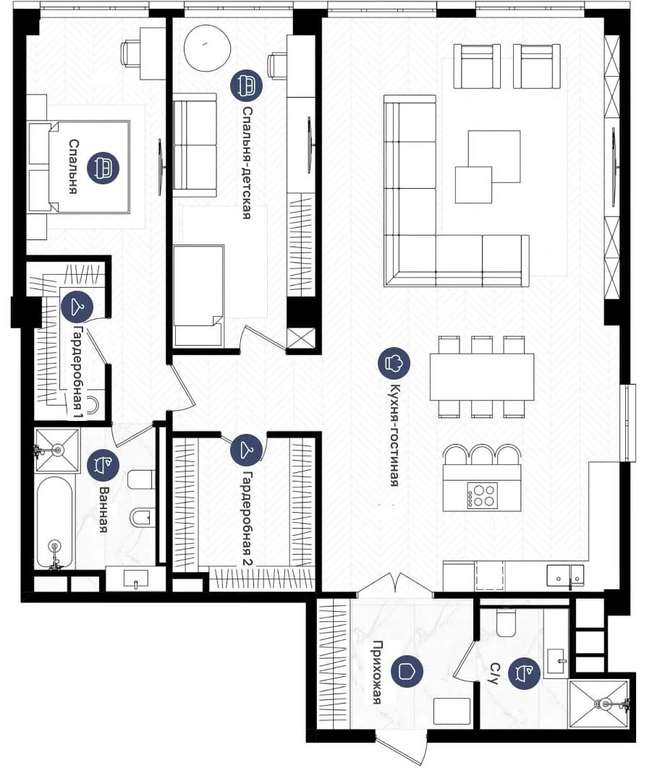 Квартира располагается на 10 этаже 14-этажного монолитного дома в ЖК Резиденции Замоскворечье 2022 года постройки. Застройщик - ООО "Трастком Девелопмент", высота потолков 3.7 м.