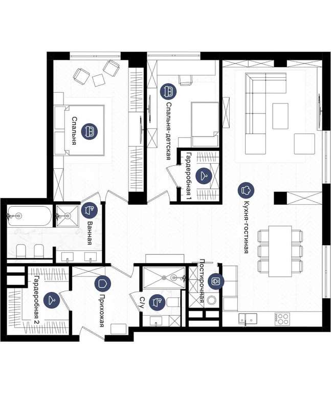 Квартира располагается на 13 этаже 14-этажного монолитного дома в ЖК Резиденции Замоскворечье 2022 года постройки. Застройщик - ООО "Трастком Девелопмент", высота потолков 3.8 м.