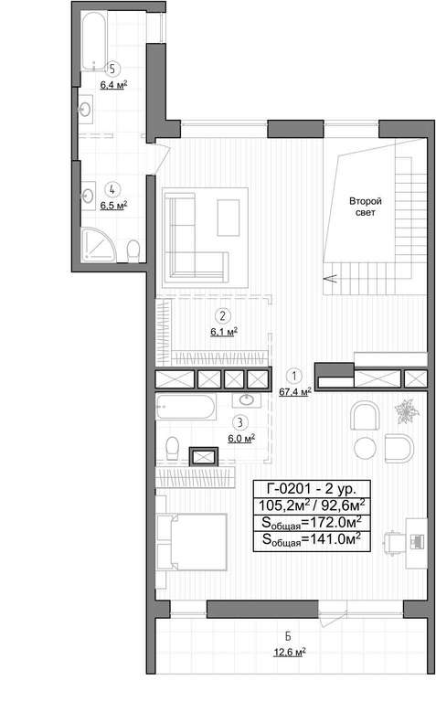 - Балкон на втором уровне