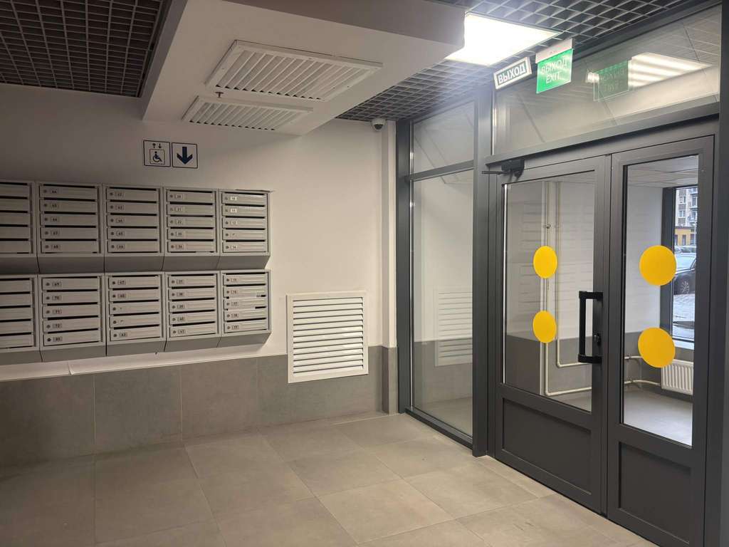Входная дверь с зеркалом, ламинат 32 класса, натяжные потолки, обои в сдержанных тонах, межкомнатные двери, розетки, выключатели, точечные светильники, установлен кондиционер;