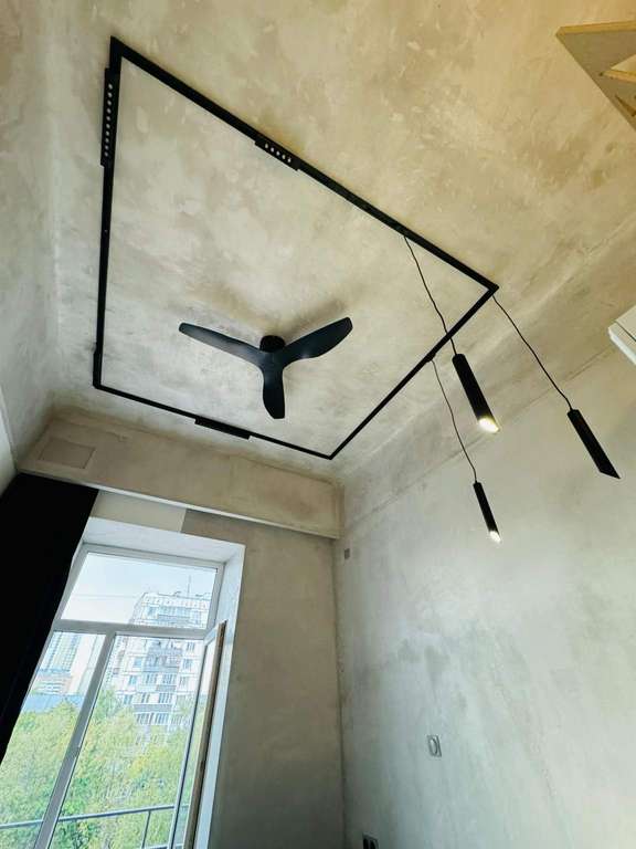 высота потолков 3.5 м. Площадь помещения по полу 14.4 м2.