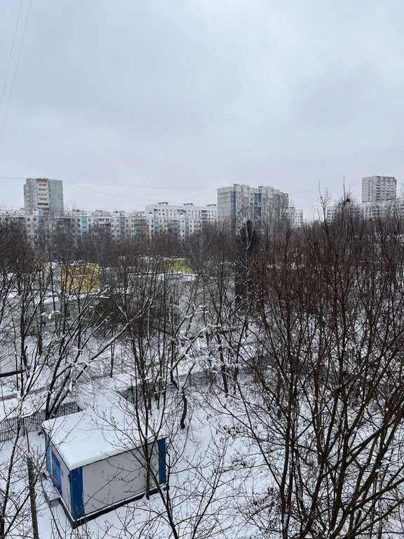 девятиэтажного панельного дома. Из окон