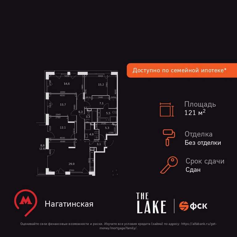 Квартира располагается на 13 этаже 17-этажного монолитного дома, высота потолков 3.17 м.