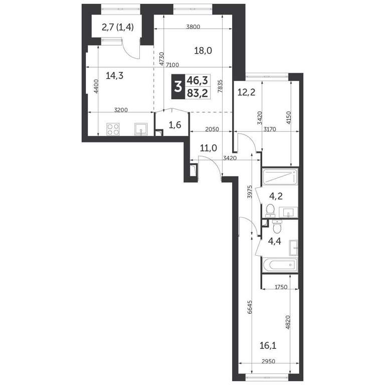 - 83.20 м2
