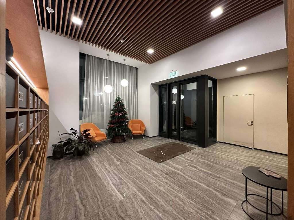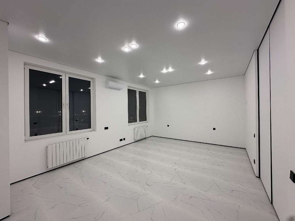 Установлен кондиционер, зонированный теплый пол из широкоформатного испанского керамогранита, так же выполнен регулируемый подогрев внешней стены между окнами.