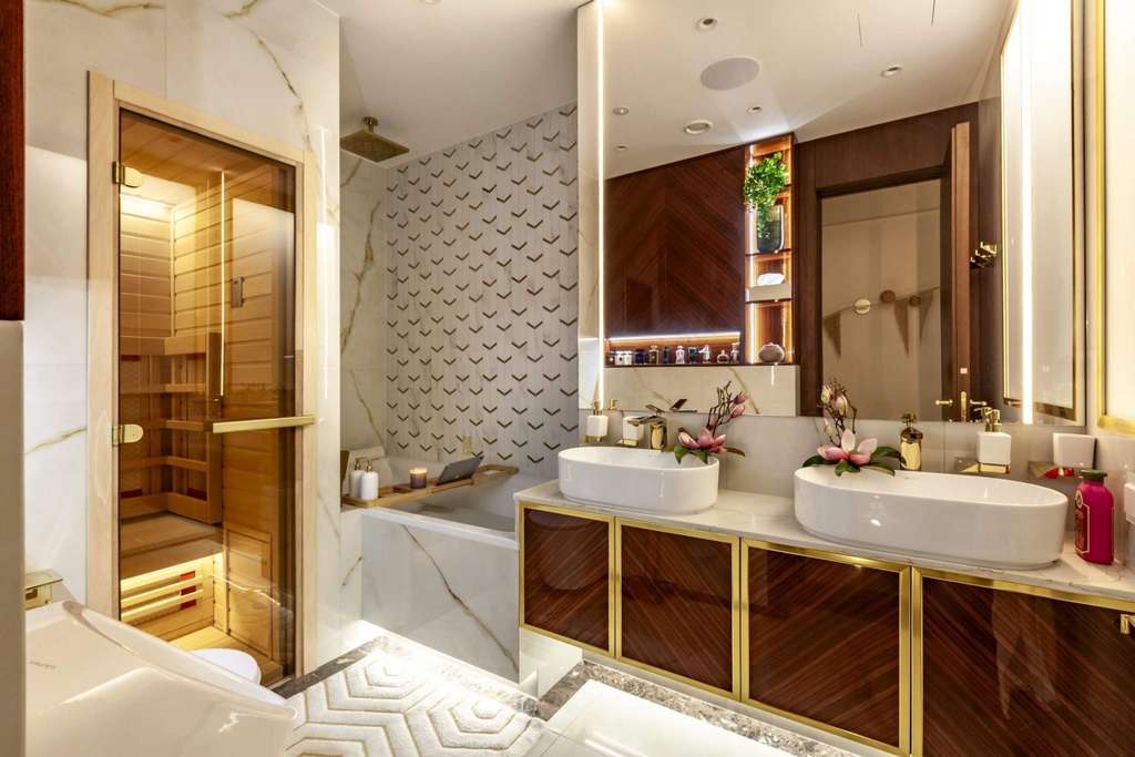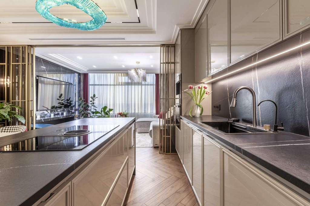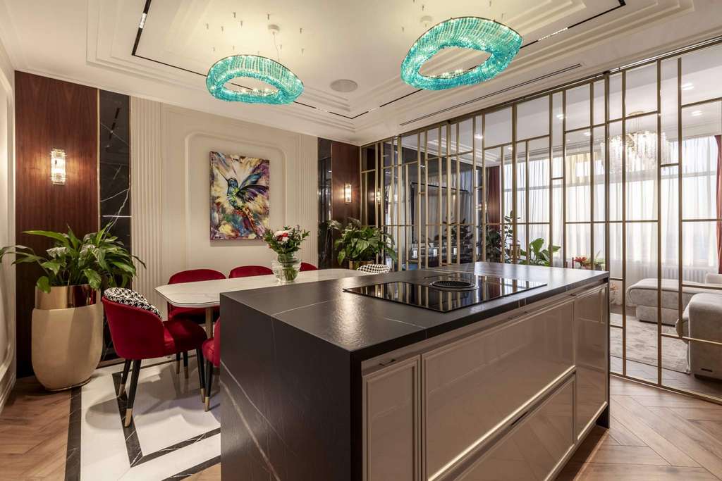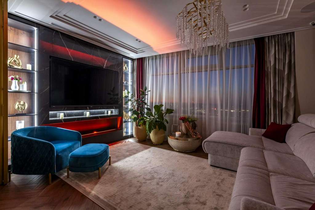 Интерьер создан студией Estee Design (премиальный дизайн интерьеров по всему Миру) . Пространство получилось современным, стильным и очень атмосферным — квартира выглядит как со страниц модного интерьерного журнала.