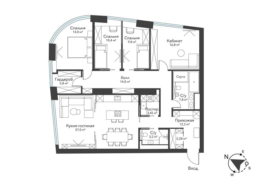 4 изолированные спальни