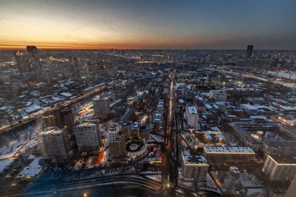 Из панорамных окон открываются захватывающие виды на Москву: городские пейзажи, а также прилегающие парки. Особенно впечатляюще квартира выглядит вечером, когда город загорается огнями.