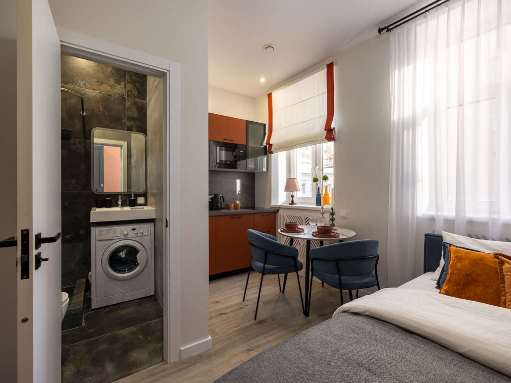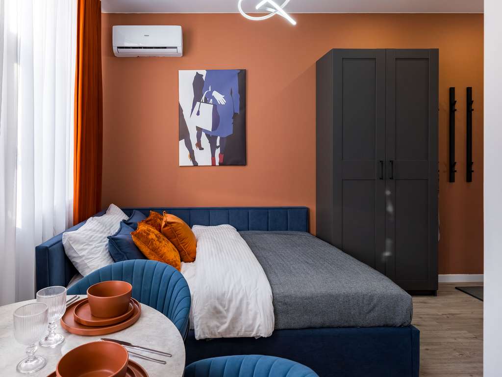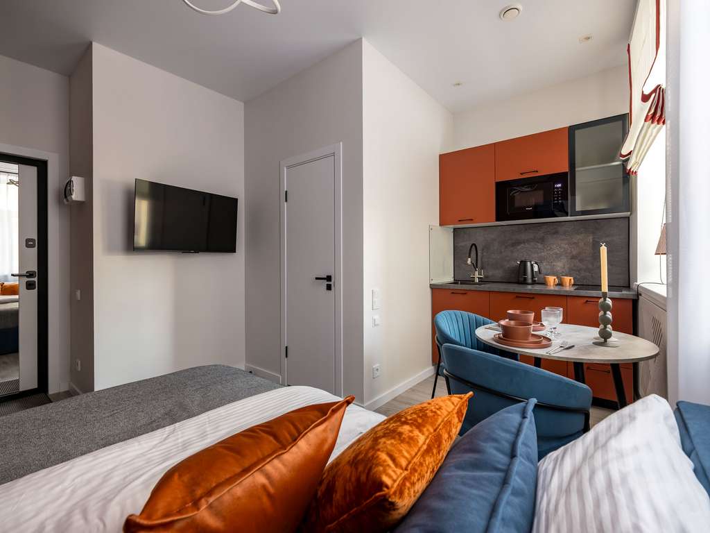 Студия 18 м2 в историческом центре Москвы. Улица Большая Татарская, дом 20, строение 2. Выполнен новый дизайнерский ремонт с полной заменой всех коммуникаций. Высокий уровень шумоизоляции — 62 Дб (уровень банковских переговорных) . Дом расположен внутри Садового кольца, в тихом районе, пешая доступность метро.