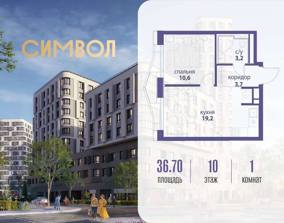 Продается 1-комнатная квартира от застройщика: общая площадь 36.70 м, жилая 10.60 м, кухня 19.20 м, 10-й этаж, жилой квартал «Вдохновение», корпус 33 (секция 3) . Срок сдачи: 4 квартал 2027 года.