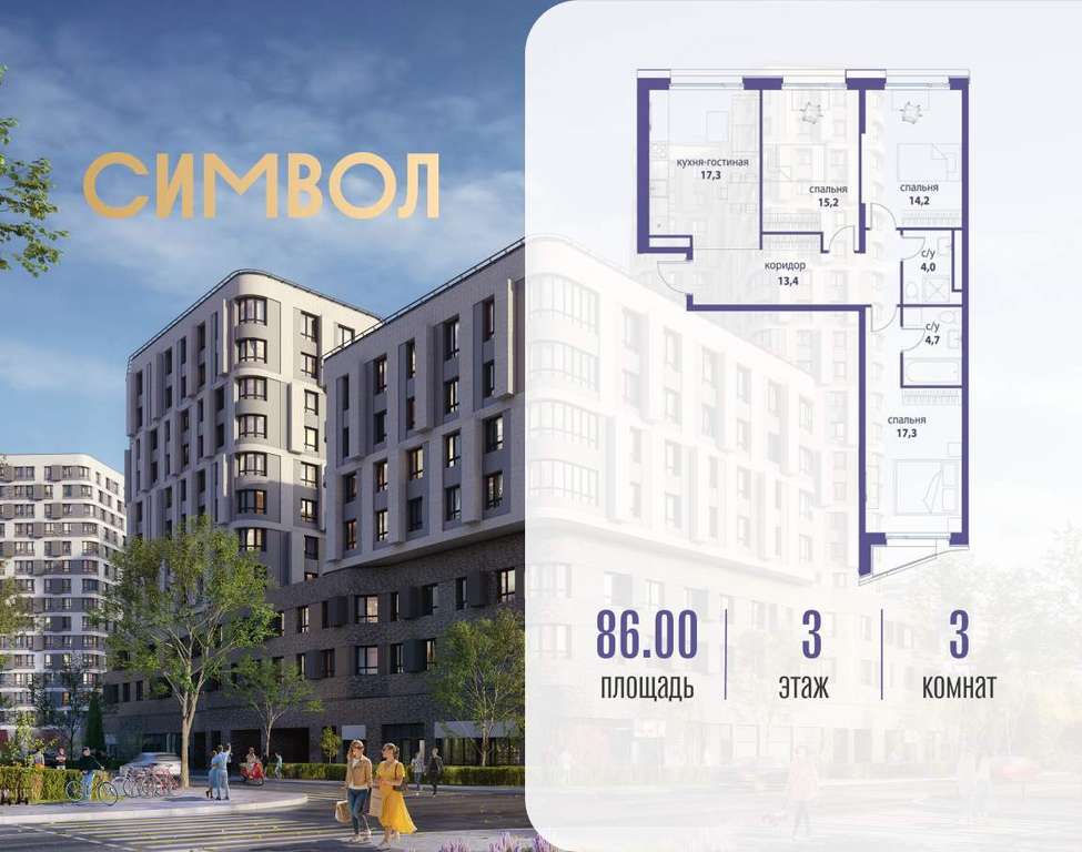 Продается 3-комнатная квартира от застройщика: общая площадь 86.00 м, жилая 46.70 м, кухня 17.30 м, 3-й этаж, жилой квартал «Вдохновение», корпус 32 (секция 2) . Срок сдачи: 4 квартал 2027 года.