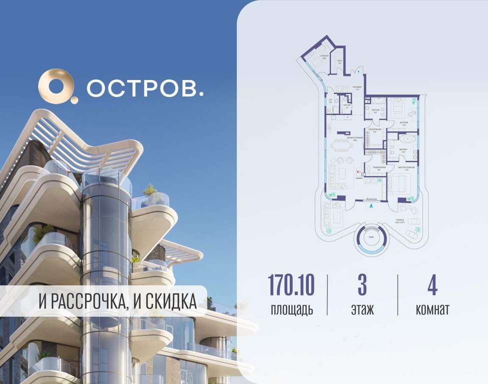 Продаётся 4-комн. квартира от застройщика: общая площадь 170.10 м, жилая 43.80 м, кухня 54.00 м, 3-й этаж, жилой квартал «Остров 10», (секция 1) . Срок сдачи: 2 квартал 2026 года.