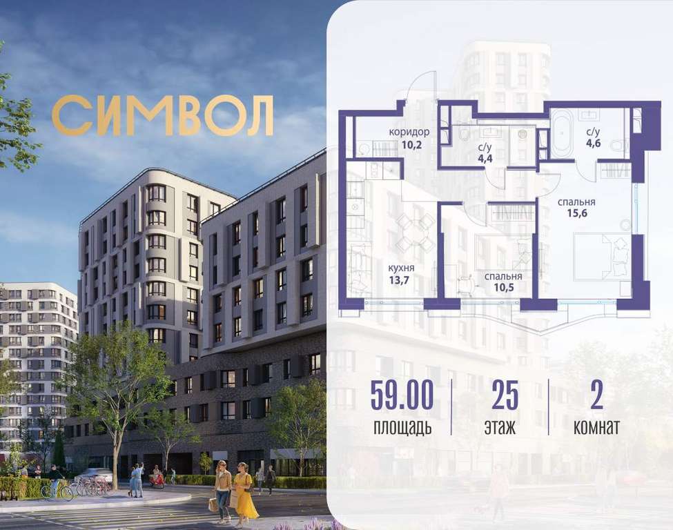 Продается 2-комнатная квартира от застройщика: общая площадь 59.00 м, жилая м, кухня м, 25-й этаж, жилой квартал «Вдохновение», корпус 33 (секция 2) . Срок сдачи: 4 квартал 2027 года.