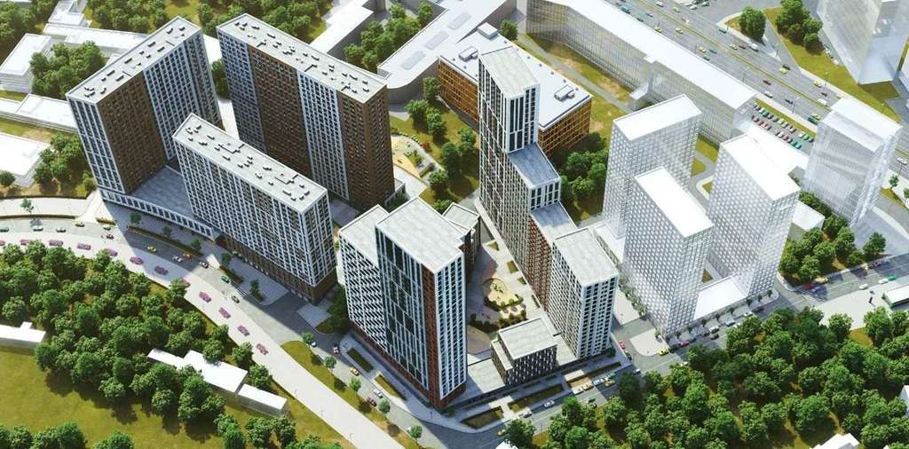 Четыре монолитных дома переменной этажности от 5 до 33 этажей, объединенные закрытым благоустроенным двором без машин, образуют единый архитектурный ансамбль с жилым комплексом «Тринити», который находится рядом
