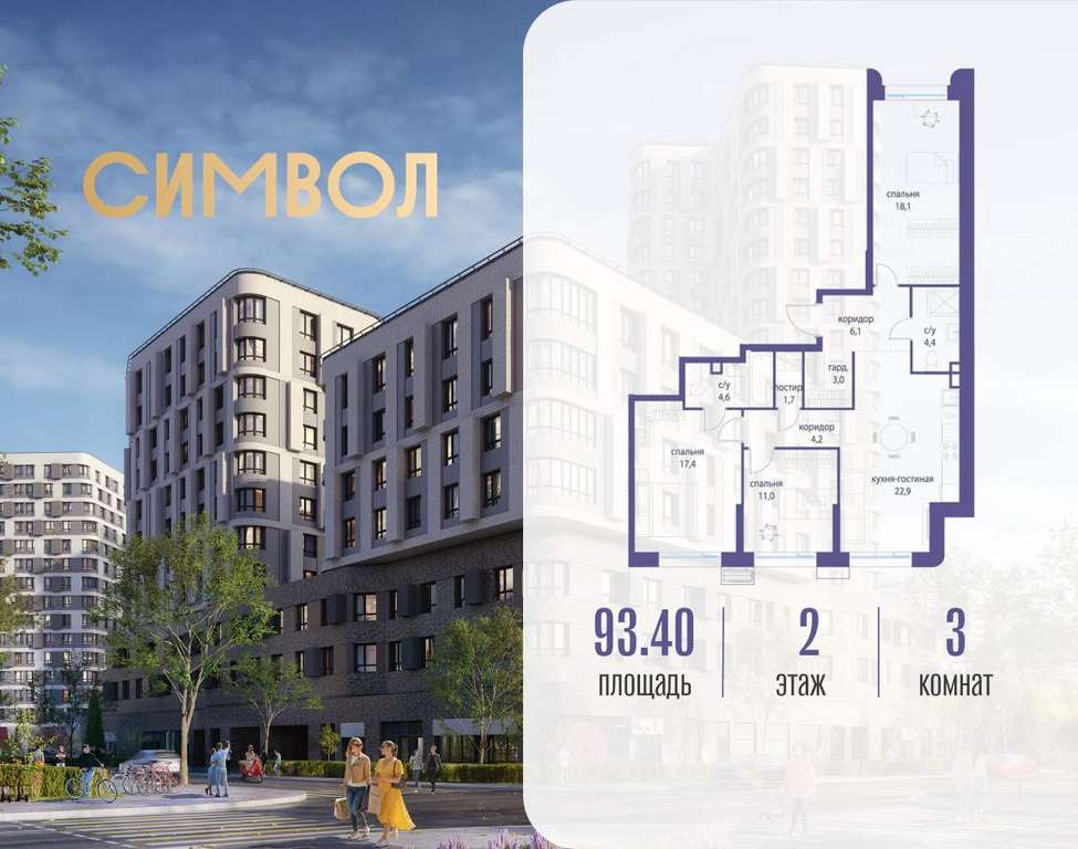 Продается 3-комнатная квартира от застройщика: общая площадь 93.40 м, жилая 46.50 м, кухня 22.90 м, 2-й этаж, жилой квартал «Гордость», корпус 36 (секция 2) . Срок сдачи: 2 квартал 2029 года.