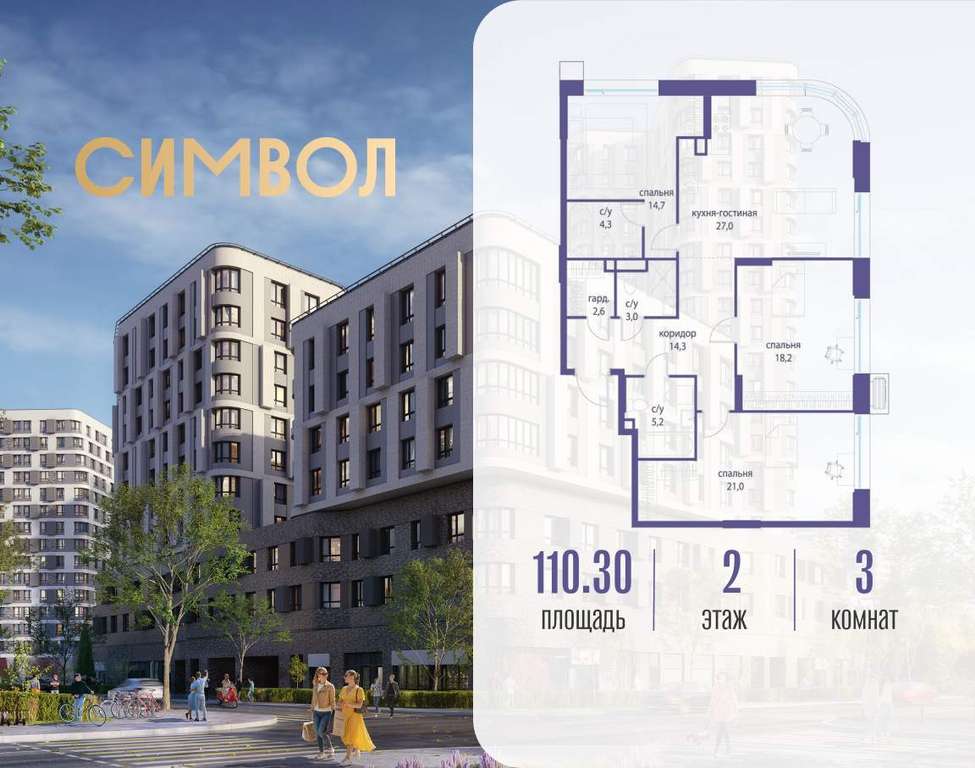 Продается 3-комнатная квартира от застройщика: общая площадь 110.30 м, жилая 53.90 м, кухня 27.00 м, 2-й этаж, жилой квартал «Гордость», корпус 36 (секция 5) . Срок сдачи: 2 квартал 2029 года.