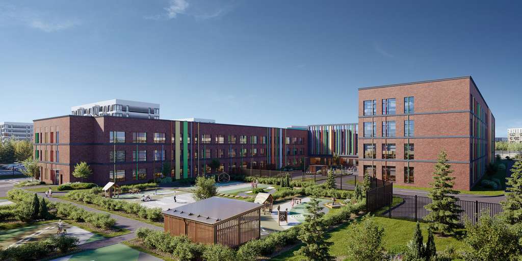 Жилой комплекс в окружении лесопарков и рядом с рекой. До станции МЦД-4 «Санино» можно дойти пешком за 7 минут, а на территории проекта появится транспортно-пересадочный узел с торговым центром. Для жителей построят школу, 2 детсада, в одном из которых будут развивающие кабинеты-трансформеры.