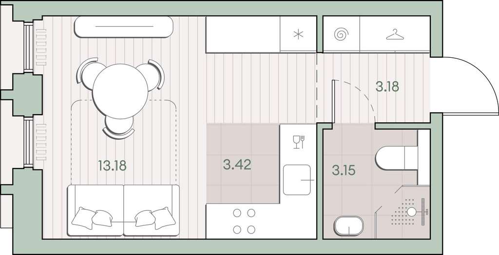 Жилая площадь 13.18 м2, кухня 3.42 м2, предчистовая отделка, комнаты изолированные.