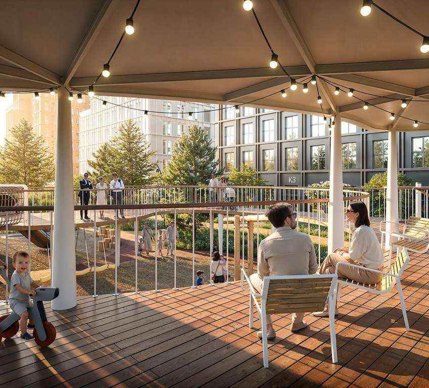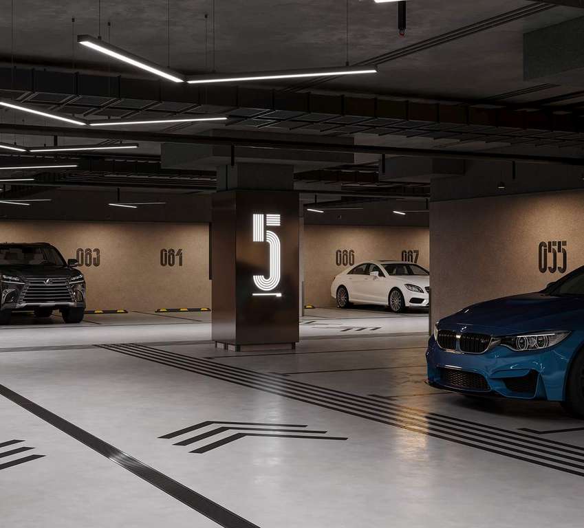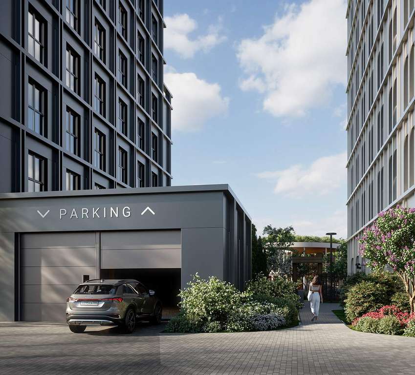 Отдельная многоуровневая парковка. Инфраструктура: детские площадки, спортивные площадки.